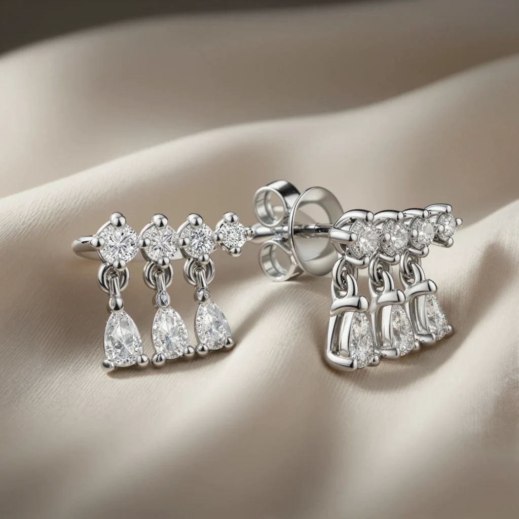 Angelina – CVD laboratory diamond earrings, total 0.94 carats, weighing 2.58 grams,