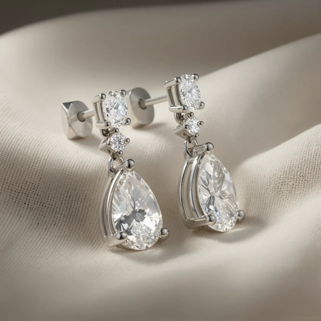 Aria – CVD laboratory diamond earrings, total 2.49 carats, weighing 1.8 grams,